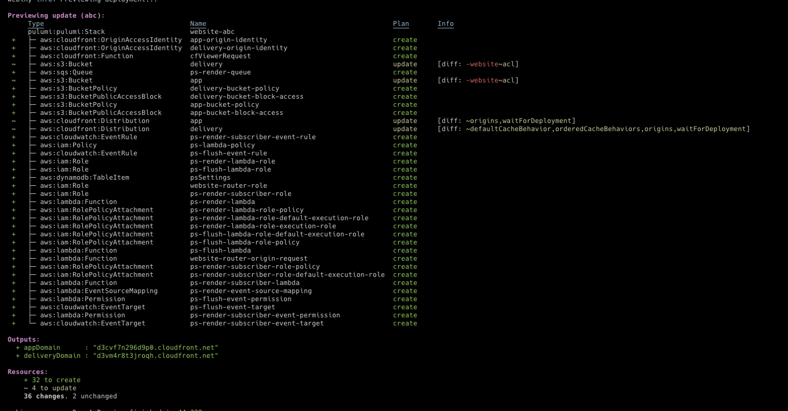 From the logs above, we can see it’s Amazon Cloudfront distribution that received changes seen in the previous preview command: